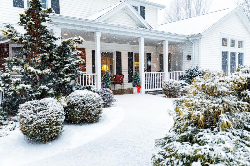 To keep you and your guests out of the wind and blowing snow, covered entrances are a huge help. Wide, flat walkways are also easier to shovel and safer to walk on. And if you really want to reduce the hassle, snow-melt driveways and heated paths will quietly do the hard work for you by melting snow and ice before it piles up.